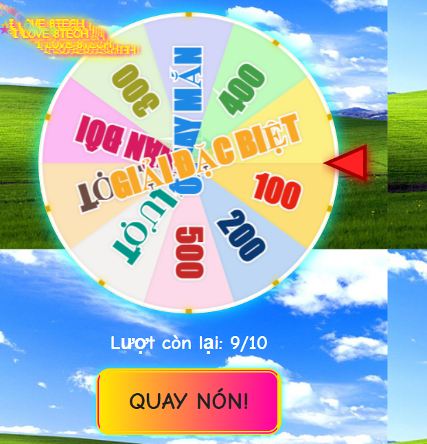 Đầu tiên, và điều thú vị nhất, bạn có thể quay vòng quay may mắn, 1 ngày 10 lượt ---> có xác suất rớt ra 100k tiền mặt từ tôi